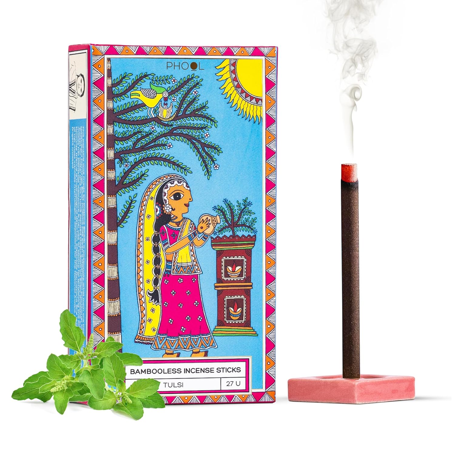 PHOOL’s innovative bambooless tulsi sticks change everything. Made from temple flowers and 100% natural essential oils, they burn cleaner and longer (60+ minutes) without the harmful chemicals found in conventional options. Perfect for those seeking authentic aromatherapy benefits.